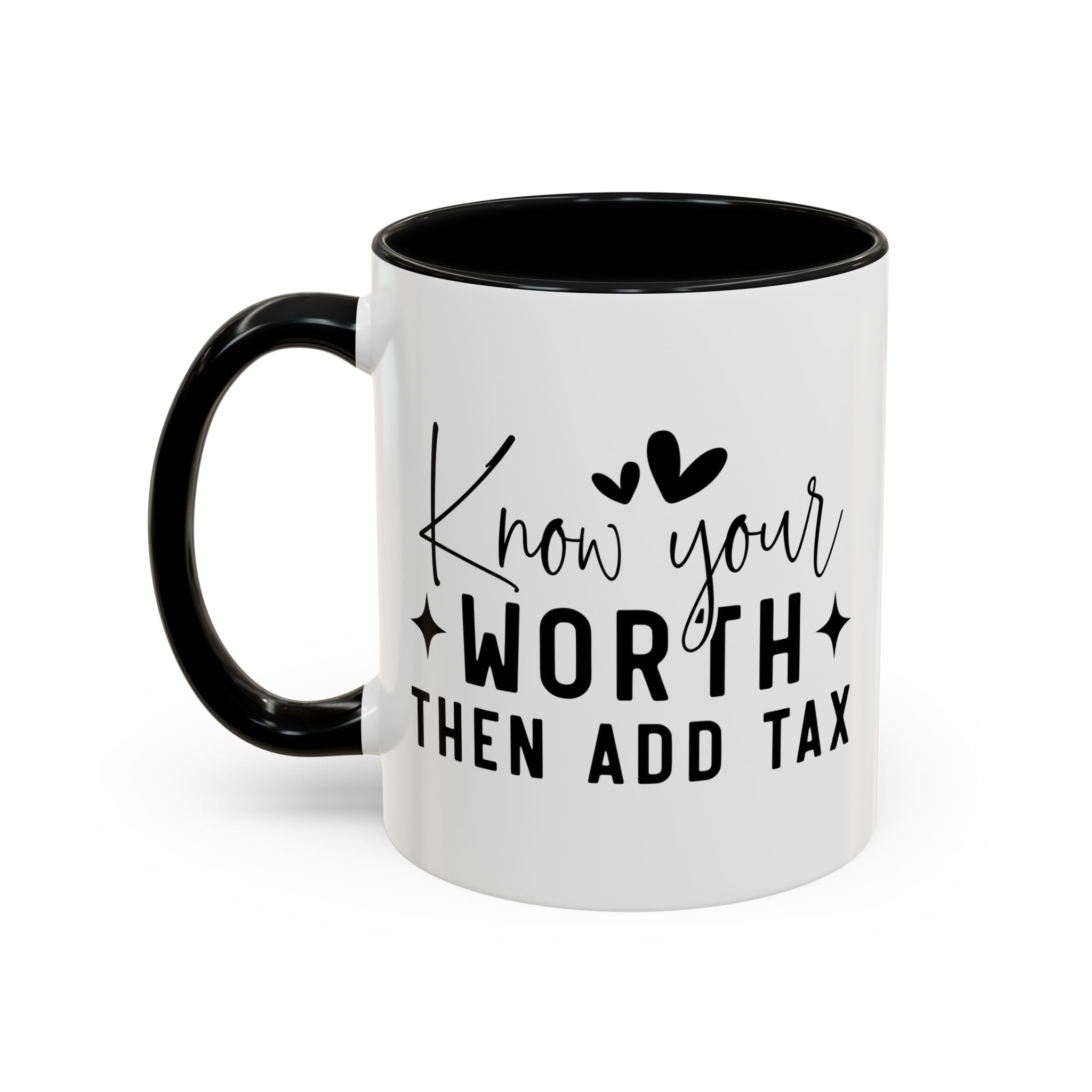 'Know Your Worth Then Add Tax' Mug (11oz, 15oz)