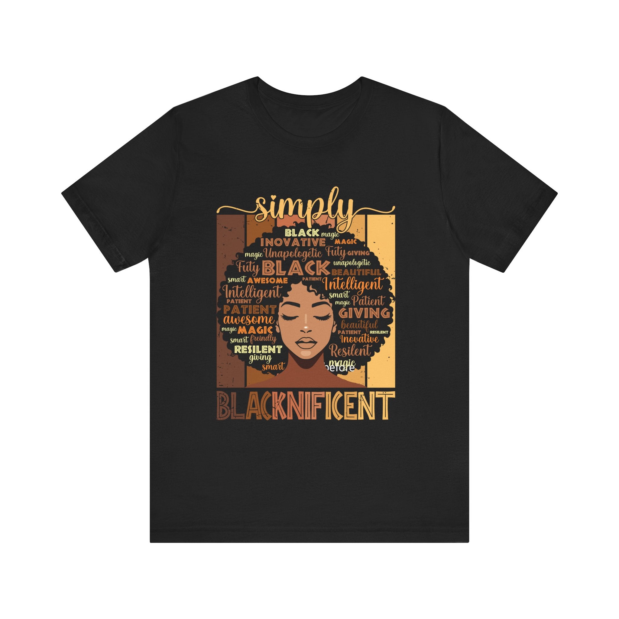 Celebrate your BLACKNESS because you are simply blacknificent!!! Go ahead and shout it from the rooftops! This graphic tee features a powerful and uplifting design. It is perfect for those who appreciate uniqueness and self-expression. Ideal for casual outings, get-togethers, or simply lounging at home, it is also a thoughtful gift for friends and family or a nice treat for you. This tee serves not only as a piece of clothing but as a statement of pride and identity. Wear it with confidence and showcase your spirit!